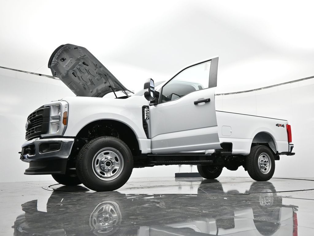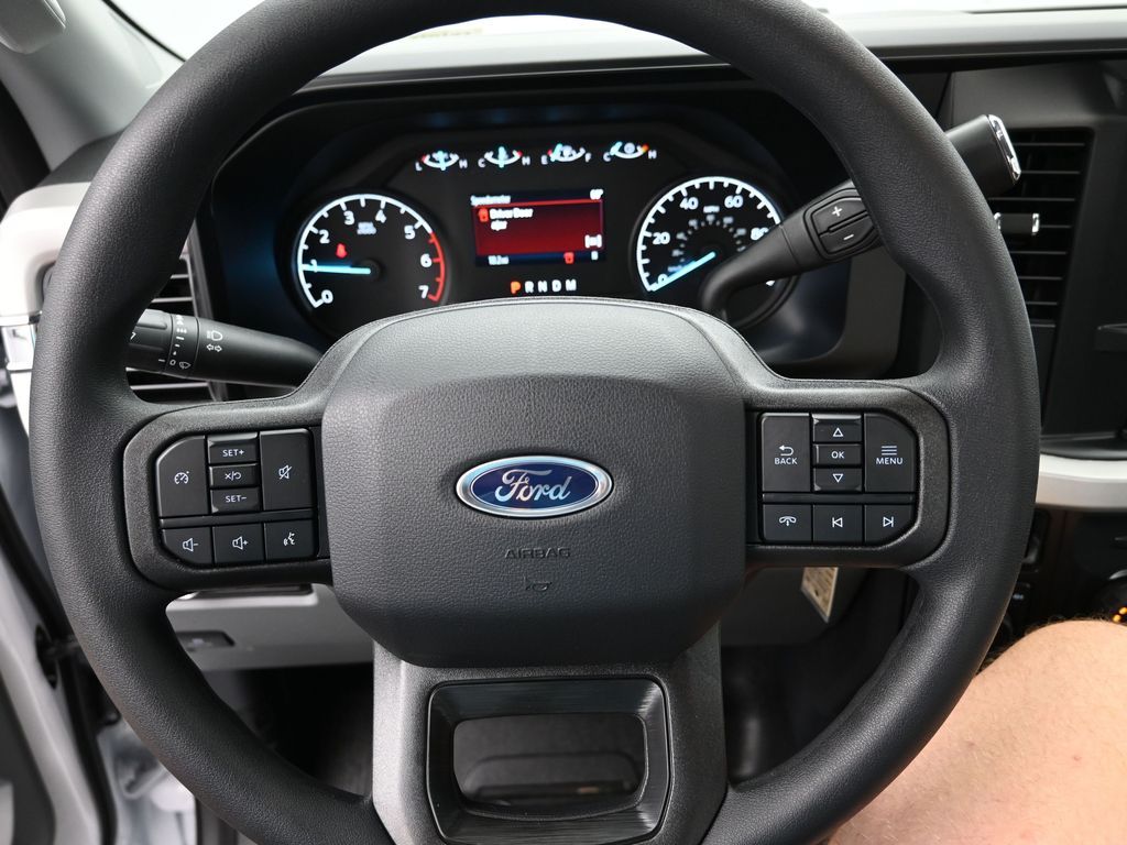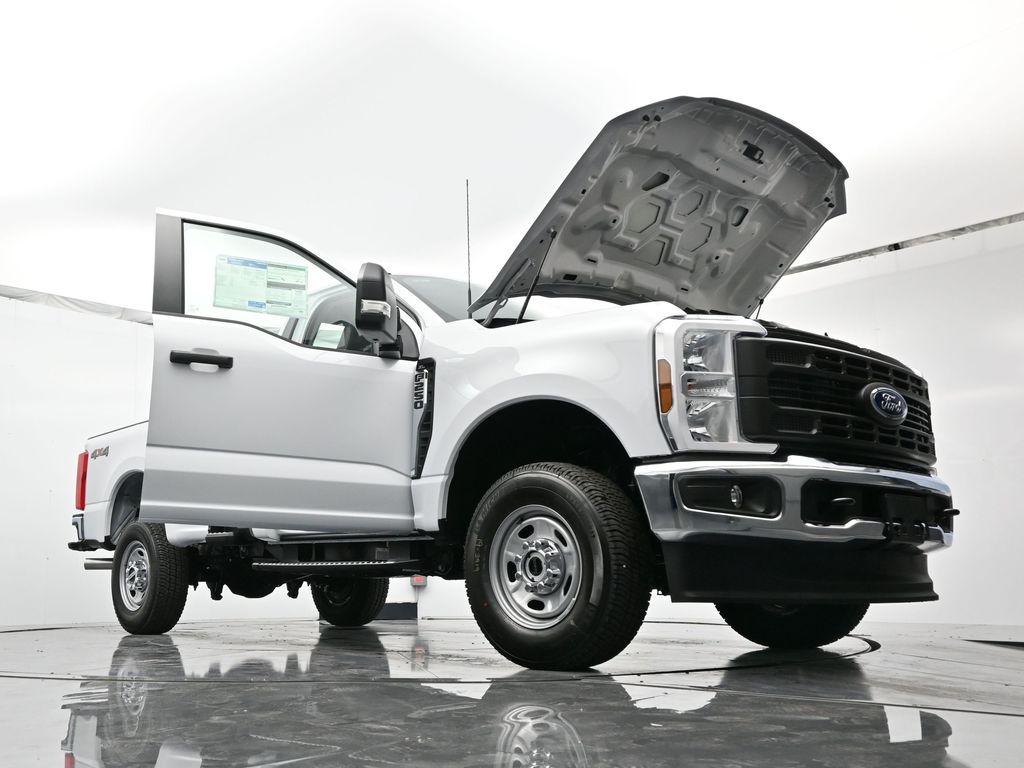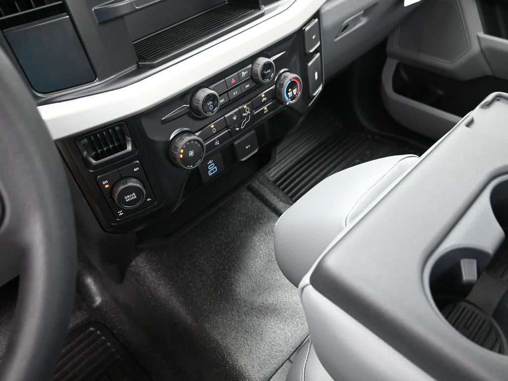 Bluetooth, Back up camera , Ford Connectivity Package (1-Year Included), GVWR: 10,000 Lb Payload Package, GVWR: F-250 >10K Package, Internet access capable: 5G Modem - Ford Connectivity Package, Order Code 600A (17" Argent Painted Steel Wheels, HD Vinyl 40/20/40 Split Bench Seat, Radio: AM/FM Stereo with MP3 Player, and SYNC 4), 4WD, 190 Amp Alternator, 250 Amp Alternator, 4 Speakers, 4-Wheel Disc Brakes, ABS brakes, Air Conditioning, AM/FM radio, Brake assist, Cloth 40/20/40 Split Bench Seat, Compass, Delay-off headlights, Dual front impact airbags, Dual front side impact airbags, Electronic Stability Control, Emergency communication system: SYNC 4 911 Assist, Exterior Parking Camera Rear, Front anti-roll bar, Front Center Armrest w/Storage, Front reading lights, Front Wheel Well Liners, Fully automatic headlights, Heated door mirrors, Illuminated entry, LED Box Lighting, Low tire pressure warning, Outside temperature display, Overhead airbag, Overhead console, Panic alarm, Passenger cancellable airbag, Passenger vanity mirror, Power door mirrors, Power steering, Power windows, Pro Power Onboard - 400W, Rear step bumper, Remote keyless entry, Security system, Speed control, Steering wheel mounted audio controls, Tachometer, Telescoping steering wheel, Tilt steering wheel, Traction control, Trip computer, Turn signal indicator mirrors, and Variably intermittent wipers.