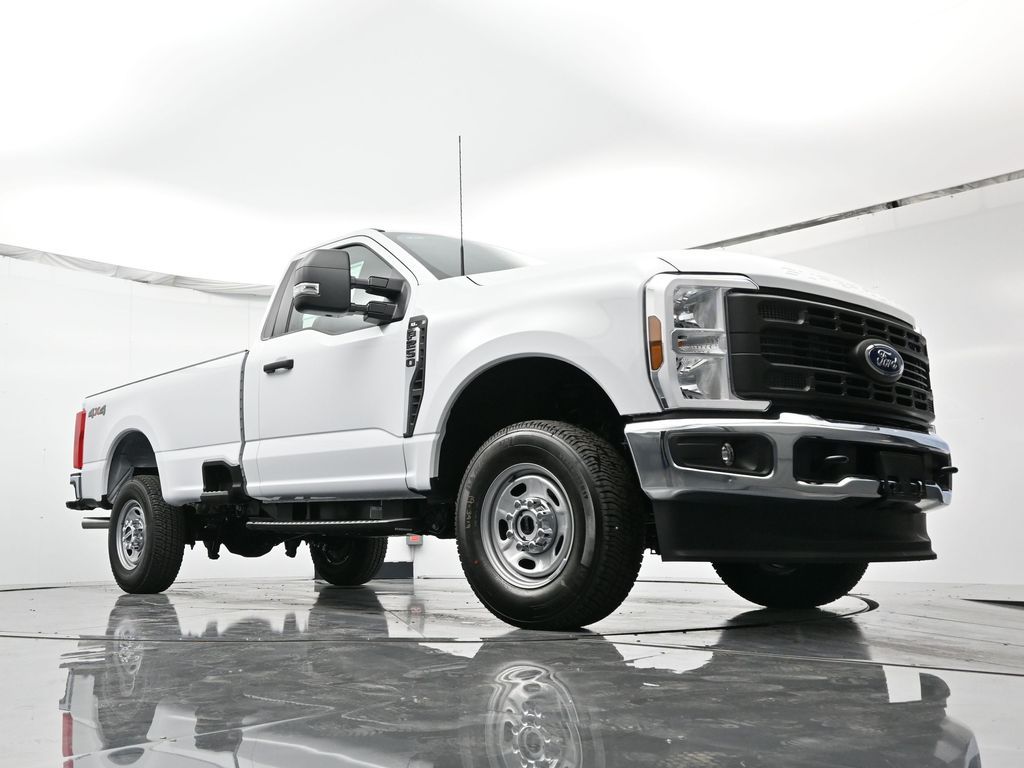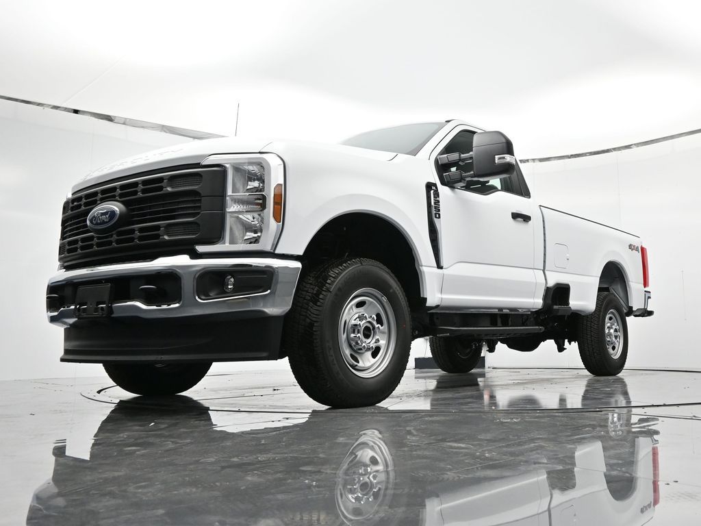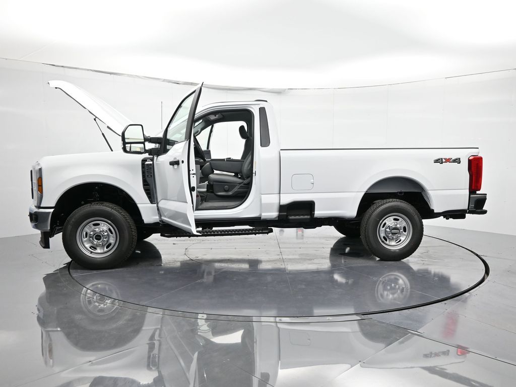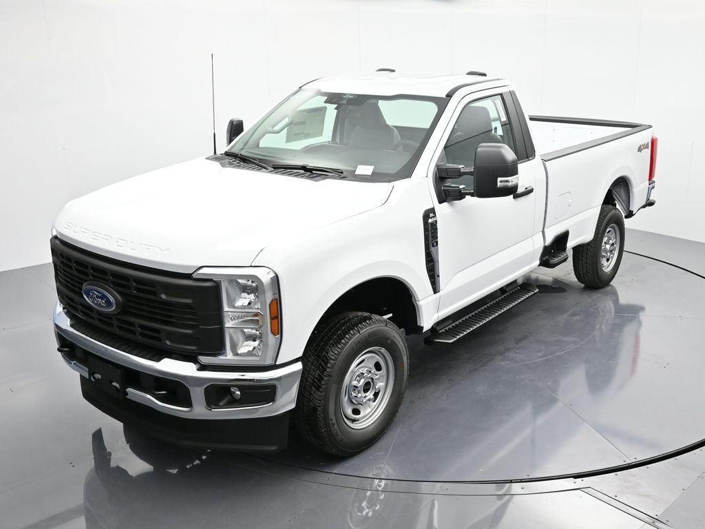 Bluetooth, Back up camera , Ford Connectivity Package (1-Year Included), GVWR: 10,000 Lb Payload Package, GVWR: F-250 >10K Package, Internet access capable: 5G Modem - Ford Connectivity Package, Order Code 600A (17" Argent Painted Steel Wheels, HD Vinyl 40/20/40 Split Bench Seat, Radio: AM/FM Stereo with MP3 Player, and SYNC 4), 4WD, 190 Amp Alternator, 250 Amp Alternator, 4 Speakers, 4-Wheel Disc Brakes, ABS brakes, Air Conditioning, AM/FM radio, Brake assist, Cloth 40/20/40 Split Bench Seat, Compass, Delay-off headlights, Dual front impact airbags, Dual front side impact airbags, Electronic Stability Control, Emergency communication system: SYNC 4 911 Assist, Exterior Parking Camera Rear, Front anti-roll bar, Front Center Armrest w/Storage, Front reading lights, Front Wheel Well Liners, Fully automatic headlights, Heated door mirrors, Illuminated entry, LED Box Lighting, Low tire pressure warning, Outside temperature display, Overhead airbag, Overhead console, Panic alarm, Passenger cancellable airbag, Passenger vanity mirror, Power door mirrors, Power steering, Power windows, Pro Power Onboard - 400W, Rear step bumper, Remote keyless entry, Security system, Speed control, Steering wheel mounted audio controls, Tachometer, Telescoping steering wheel, Tilt steering wheel, Traction control, Trip computer, Turn signal indicator mirrors, and Variably intermittent wipers.
