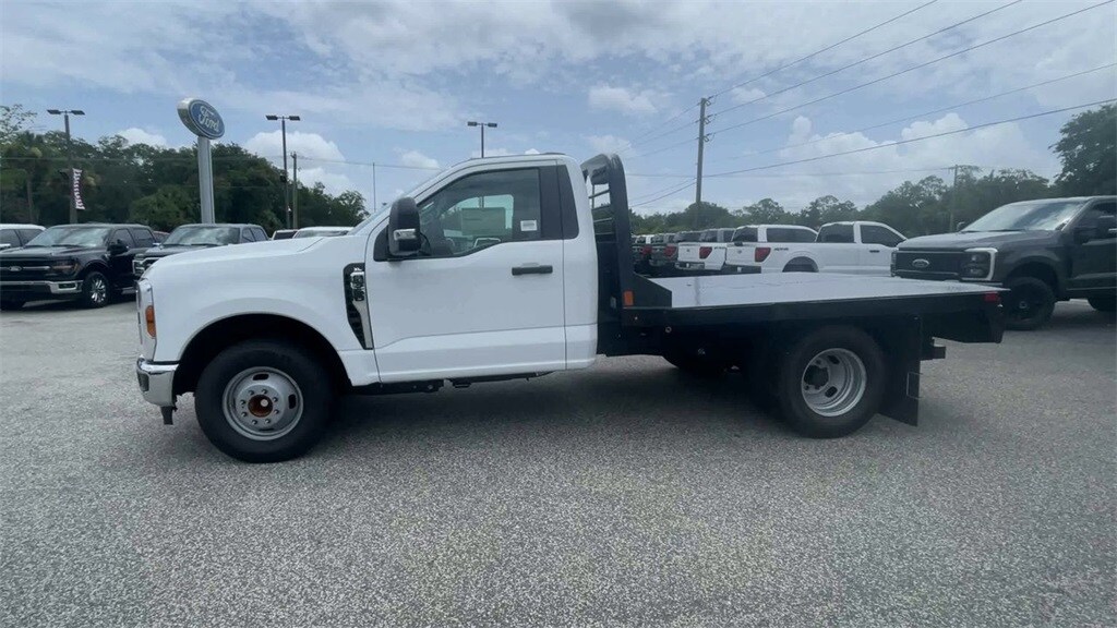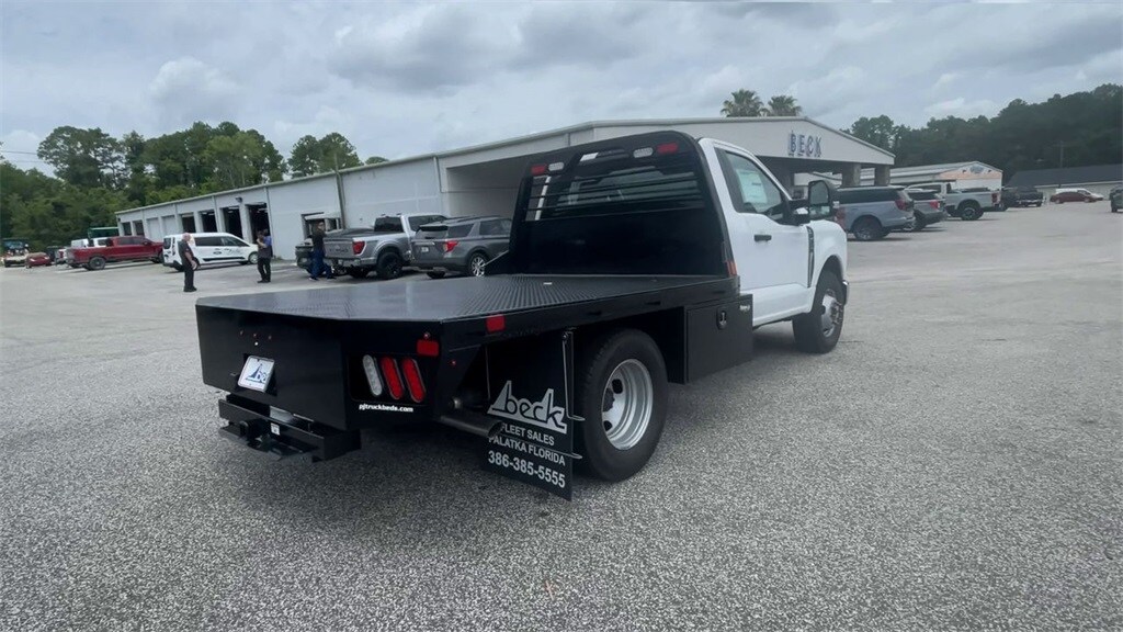 We added flatbed with toolbox to this unit. Ready to go make you some money. Gooseneck built in. Oxford White 2024 Ford F-350SD XL RWD 10-Speed Automatic 7.3L V8 PFI OHV 16V Federal 335hp Bluetooth, Back up camera , GVWR: 14,000 lb Payload Package, Heavy-Service Front Suspension Package, Order Code 640A, XL Chrome Package (Bright Grille, Chrome Front Bumper, Halogen Fog Lamps, and Remote Start), 17" Argent Painted Steel Wheels, 3.73 Axle Ratio, 4 Speakers, 4-Wheel Disc Brakes, ABS brakes, Air Conditioning, AM/FM radio, AM/FM Stereo w/MP3 Player, Brake assist, Compass, Delay-off headlights, Dual front impact airbags, Dual front side impact airbags, Dual rear wheels, Emergency communication system: SYNC 4 911 Assist, Front anti-roll bar, Front Center Armrest w/Storage, Front reading lights, Front wheel independent suspension, Fully automatic headlights, HD Vinyl 40/20/40 Split Bench Seat, Heated door mirrors, Illuminated entry, Low tire pressure warning, Outside temperature display, Overhead airbag, Overhead console, Panic alarm, Passenger cancellable airbag, Passenger vanity mirror, Power door mirrors, Power steering, Power windows, Rear anti-roll bar, Remote keyless entry, Speed control, Steering wheel mounted audio controls, SYNC 4 Communications & Entertainment System, Tachometer, Telescoping steering wheel, Tilt steering wheel, Traction control, Trip computer, Turn signal indicator mirrors, and Variably intermittent wipers.