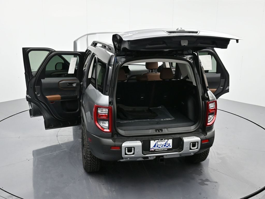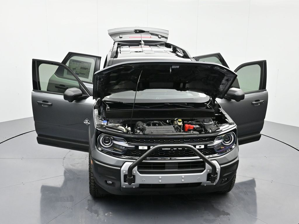 Bluetooth, Back up camera , Equipment Group 300A, Outer Banks Tech Package+ (B&O Sound System by Bang & Olufsen, Connected Navigation, and HD Radio), Sasquatch Outer Banks Package (110V/400W AC Power Outlet, 2nd Row Carpeted Seatback, Auxiliary Switches & Wiring, Brush Guard, Class II Trailer Tow Pack w/Trailer Sway Control, Fender Tie Downs, Front & Rear Black Bumpers, High Clearance Fender Flares, HOSS 2.0 Off-Road Suspension, Interior Grab Handle, Recovery Hooks, Trail Control for Off-Road, and Wheels: 17" Ebony Black-Painted Aluminum), 360-Degree Camera w/Trail & Split View, 4-Wheel Disc Brakes, 6 Speakers, ABS brakes, Air Conditioning, Alloy wheels, AM/FM radio: SiriusXM, AM/FM Stereo, Auto High-beam Headlights, Auto-dimming Rear-View mirror, Automatic temperature control, Brake assist, Compass, Delay-off headlights, Driver door bin, Driver vanity mirror, Dual front impact airbags, Dual front side impact airbags, Electronic Stability Control, Emergency communication system: SYNC 4 911 Assist, Four wheel independent suspension, Front & Rear Floor Liners w/o Carpet Mats, Front anti-roll bar, Front Bucket Seats, Front Center Armrest, Front Driver/Passenger Seat Back Map Pockets, Front dual zone A/C, Front fog lights, Front Parking Sensors, Front reading lights, Fully automatic headlights, Garage door transmitter, Heated door mirrors, Heated front seats, Heated steering wheel, Illuminated entry, Knee airbag, Low tire pressure warning, Memory seat, Occupant sensing airbag, Outside temperature display, Overhead airbag, Overhead console, Panic alarm, Passenger door bin, Passenger vanity mirror, Power door mirrors, Power driver seat, Power passenger seat, Power steering, Power windows, Premium Trimmed Front Bucket Seats w/Ebony/Roast, Radio data system, Rain sensing wipers, Rear anti-roll bar, Rear Parking Sensors, Rear reading lights, Rear seat center armrest, Rear window defroster, Rear window wiper, Remote keyless entry, Reverse Brake Assist, Security system, SiriusXM, Speed control, Speed-sensing steering, Speed-Sensitive Wipers, Split folding rear seat, Steering wheel mounted audio controls, SYNC 4 w/Enhanced Voice Recognition, Tachometer, Telescoping steering wheel, Tilt steering wheel, Traction control, Trip computer, Variably intermittent wipers, and Wheels: 18" Ebony Black-Painted Aluminum.