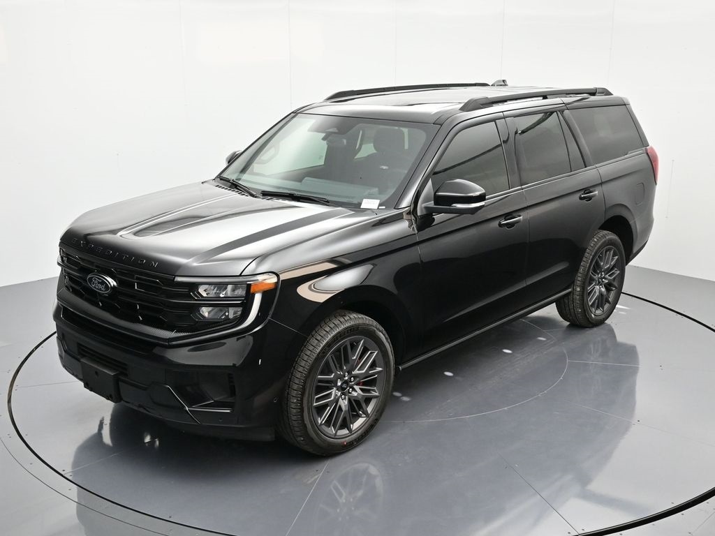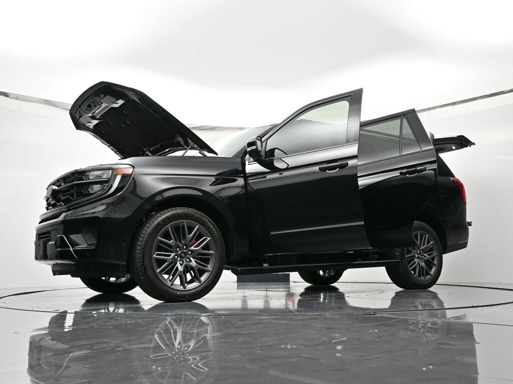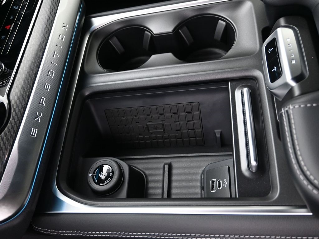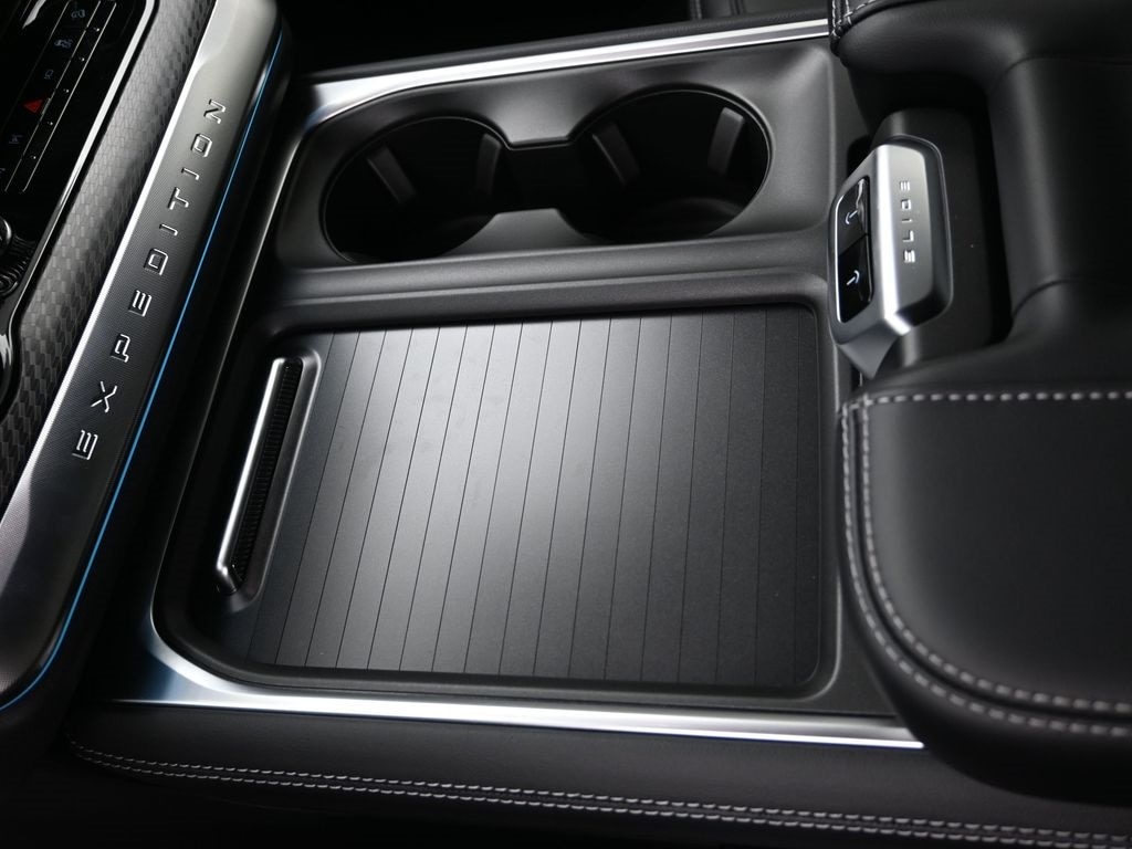 Bluetooth, Back up camera , Driver's Package (Continuous Control Damping Suspension, Radio: B&O Unleashed Sound System by Bang & Olufsen, and SiriusXM w/360L), Equipment Group 600A Standard Package (2nd Row Power-Folding Captain's Chairs), Stealth Appearance Package (Black Belt Molding, Black Expedition Lettering On Hood, Black Headlamp Bezel w/Ebony Trim Applique, Black Platinum Badge On Tailgate, Black Roof Rails, Carbon Black Front Bumper/Fascia, Engine Sound Enhancer, Rear Side Windows Laminated Glass, and Signature Grille Lighting), Stealth Performance Package (High Flow Exhaust System, Red Brake Calipers, and Wheels: 22" Magnetite Painted Aluminum), 4WD, 10 Speakers, 3.73 Axle Ratio, 3rd row seats: split-bench, 4-Wheel Disc Brakes, ABS brakes, Adjustable pedals, Air Conditioning, Alloy wheels, AM/FM radio: SiriusXM with 360L, Apple CarPlay/Android Auto, Auto High-beam Headlights, Auto-dimming door mirrors, Auto-dimming Rear-View mirror, Automatic temperature control, Brake assist, Bumpers: body-color, Compass, Delay-off headlights, Driver door bin, Driver vanity mirror, Dual front impact airbags, Dual front side impact airbags, Electronic Stability Control, Emergency communication system: 911 Assist, Exterior Parking Camera Rear, Floor Liners, Front & Second Rows, Four wheel independent suspension, Front anti-roll bar, Front Bucket Seats, Front Center Armrest, Front dual zone A/C, Front License Plate Bracket, Front reading lights, Fully automatic headlights, Garage door transmitter, Genuine wood dashboard insert, Genuine wood door panel insert, Heated & Ventilated Leather Front Captain's Chairs, Heated door mirrors, Heated front seats, Heated rear seats, Heated steering wheel, Illuminated entry, Leather steering wheel, Low tire pressure warning, Memory seat, Navigation System, Occupant sensing airbag, Outside temperature display, Overhead airbag, Overhead console, Panic alarm, Passenger door bin, Passenger vanity mirror, Pedal memory, Power door mirrors, Power driver seat, Power moonroof: Vista Roof, Power passenger seat, Power steering, Power windows, Radio data system, Radio: B&O Sound System by Bang & Olufsen, Rain sensing wipers, Rear air conditioning, Rear anti-roll bar, Rear reading lights, Rear window defroster, Rear window wiper, Reclining 3rd row seat, Remote keyless entry, Security system, Speed control, Speed-sensing steering, Speed-Sensitive Wipers, Split folding rear seat, Spoiler, Steering wheel memory, Steering wheel mounted audio controls, Tachometer, Telescoping steering wheel, Tilt steering wheel, Traction control, Trip computer, Turn signal indicator mirrors, Variably intermittent wipers, Ventilated front seats, Voltmeter, and Wheels: 20" Ebony Bright Machined Aluminum.