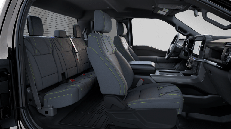 Bluetooth, Back up camera , Equipment Group 200A Mid (LED Fog Lamps w/LED Cornering Lamp and Wheels: 20" Dark Gray w/Machined Aluminum), GVWR: 6,365 lbs Payload Package, Mobile Office Package (400W Cab & Bed Outlets and Console Worksurface), 3.55 Axle Ratio, 4-Wheel Disc Brakes, 6 Speakers, ABS brakes, Air Conditioning, Alloy wheels, AM/FM radio: SiriusXM with 360L, Auto High-beam Headlights, Brake assist, Bumpers: body-color, Compass, Delay-off headlights, Driver door bin, Dual front impact airbags, Dual front side impact airbags, Electronic Stability Control, Emergency communication system: SYNC 4 911 Assist, Front anti-roll bar, Front Bucket Seats, Front Center Armrest, Front License Plate Bracket, Front reading lights, Front wheel independent suspension, Fully automatic headlights, Heated door mirrors, Illuminated entry, Internet access capable: FordPass Connect 5G, Low tire pressure warning, Occupant sensing airbag, Outside temperature display, Overhead airbag, Overhead console, Panic alarm, Passenger door bin, Passenger vanity mirror, Power door mirrors, Power steering, Power windows, Radio data system, Radio: AM/FM Stereo w/SiriusXM 360L, Rear Parking Sensors, Rear step bumper, Rear window defroster, Remote keyless entry, Security system, Speed control, Split folding rear seat, Steering wheel mounted audio controls, SYNC 4 w/Enhanced Voice Recognition, Tachometer, Telescoping steering wheel, Tilt steering wheel, Traction control, Tray Style Floor Liner w/Carpet Mats, Trip computer, Variably intermittent wipers, Voltmeter, and Wheels: 18" Gloss Black.