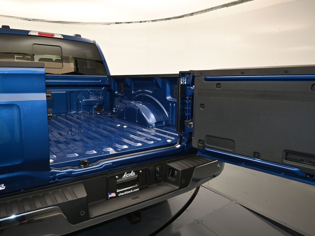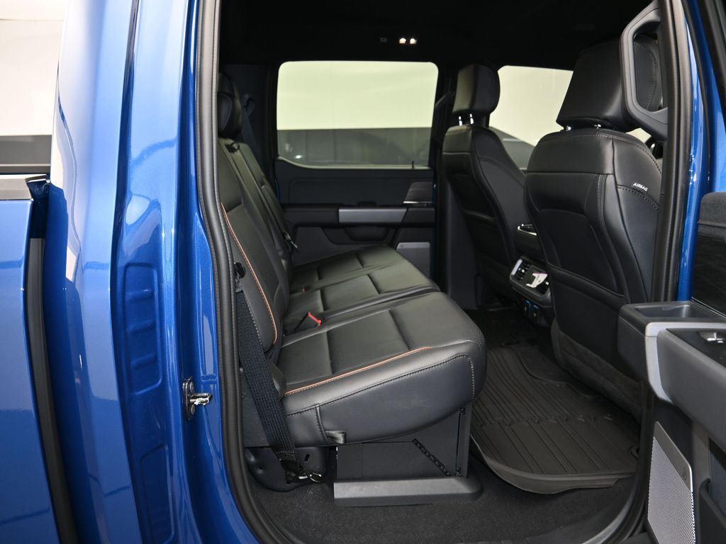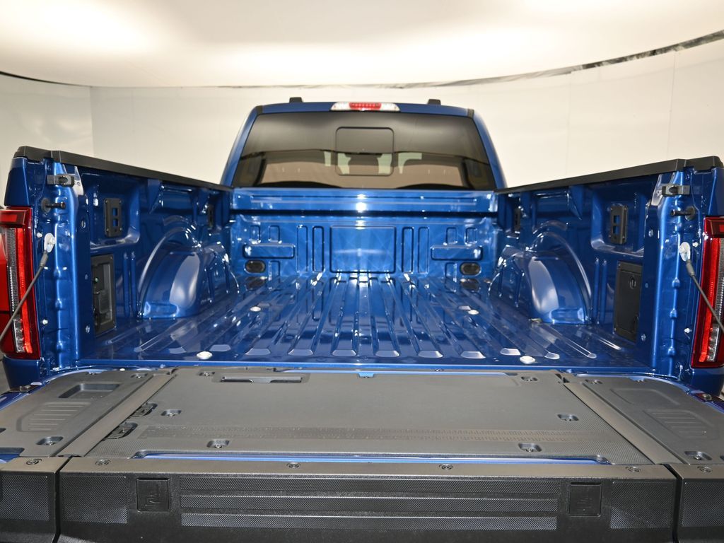 Bluetooth, Back up camera , Bed Utility Package (4 Pickup Box Tie-Down Plates, LED Box Lighting, Power Tailgate, and Pro Access Tailgate), Equipment Group 502A High (Wheels: 20" Chrome-Like PVD), FX4 Off-Road Package (4x4 FX4 Off-Road Bodyside Decal, Hill Descent Control, Monotube Rear Shocks, Off-Road Tuned Front Shock Absorbers, Rock Crawl Mode, and Tray Style Floor Liner w/o Carpet Mats), Mobile Office Package (Console Worksurface, Partitioned Lockable Rear Storage, and Wireless Charging), Tow/Haul Package, 3.5L PowerBoost Full-Hybrid V6, 4WD, 4-Wheel Disc Brakes, 6" Extended Running Boards, 8 Speakers, ABS brakes, ActiveX Trimmed Bucket Seats, Adjustable pedals, Air Conditioning, Alloy wheels, AM/FM radio: SiriusXM with 360L, Auto High-beam Headlights, Auto-dimming door mirrors, Auto-dimming Rear-View mirror, Automatic temperature control, Brake assist, Bumpers: chrome, Chrome wheels, Compass, Delay-off headlights, Driver door bin, Driver vanity mirror, Dual front impact airbags, Dual front side impact airbags, Electronic Stability Control, Emergency communication system: SYNC 4 911 Assist, Front anti-roll bar, Front Bucket Seats, Front Center Armrest, Front dual zone A/C, Front fog lights, Front License Plate Bracket, Front reading lights, Front wheel independent suspension, Fully automatic headlights, Garage door transmitter, Heated door mirrors, Heated front seats, Heated steering wheel, Illuminated entry, Internet access capable: FordPass Connect 5G, Low tire pressure warning, Memory seat, Navigation system: Connected Navigation, Occupant sensing airbag, Outside temperature display, Overhead airbag, Overhead console, Panic alarm, Passenger door bin, Passenger vanity mirror, Pedal memory, Power door mirrors, Power driver seat, Power passenger seat, Power steering, Power windows, Radio data system, Radio: B&O Sound System by Bang & Olufsen, Rain sensing wipers, Rear reading lights, Rear seat center armrest, Rear step bumper, Rear window defroster, Remote keyless entry, Security system, Speed control, Split folding rear seat, Steering wheel mounted audio controls, SYNC 4 w/Enhanced Voice Recognition, Tachometer, Telescoping steering wheel, Tilt steering wheel, Traction control, Trip computer, Turn signal indicator mirrors, Variably intermittent wipers, Ventilated front seats, Voltmeter, and Wheels: 18" Chrome-Like PVD.