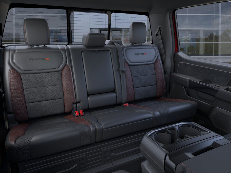 Bluetooth, Back up camera , Equipment Group 803A Raptor R (Code Orange Front Tow Hooks, Code Orange Stitching Doors and Instrument Panel, Dual Valve Shocks, Electronic Locking with 4.10 Axle Ratio, Interior Code Orange Raptor R Badging, Modular Front Bumper, Radio: B&O Unleashed Sound System by Bang & Olufsen, Raptor R Badge Tailgate Applique, Raptor R Exterior Graphics, Raptor R Exterior Theme, Raptor R Interior Theme, Raptor R Unique Grille, Raptor R Unique Hood Vent with R Badge, RECARO with Code Orange Stitching Front Seats, Removes 2KW Pro Power Onboard, SYNC 4 with Enhanced Voice Recognition, Unique Carbon Fiber Appliques, Upgraded Dual Exhaust, and Wheels: Raptor R Unique 17" Forged Aluminum), Ford Connectivity Package (1-Year Included), Internet access capable: 5G Modem - Ford Connectivity Package, 4WD, 14 Speakers, 17" Cast Aluminum Wheels, 4-Wheel Disc Brakes, ABS brakes, Adjustable pedals, Air Conditioning, Alloy wheels, AM/FM radio: SiriusXM with 360L, Auto High-beam Headlights, Auto tilt-away steering wheel, Auto-dimming door mirrors, Auto-dimming Rear-View mirror, Automatic temperature control, Brake assist, Bumpers: body-color, Compass, Delay-off headlights, Driver door bin, Driver vanity mirror, Driver's Side SecuriCode Keyless-Entry Keypad, Dual front impact airbags, Dual front side impact airbags, Electronic Stability Control, Emergency communication system: SYNC 4 911 Assist, Front anti-roll bar, Front Bucket Seats, Front Center Armrest, Front dual zone A/C, Front fog lights, Front License Plate Bracket, Front reading lights, Front wheel independent suspension, Fully automatic headlights, Garage door transmitter, Heated door mirrors, Heated front seats, Heated rear seats, Heated steering wheel, Illuminated entry, Lane Departure Warning System, Leather steering wheel, Leather Trimmed Seats, Low tire pressure warning, Memory seat, Navigation system: Connected Navigation, Occupant sensing airbag, Outside temperature display, Overhead airbag, Overhead console, Panic alarm, Passenger door bin, Passenger vanity mirror, Pedal memory, Power door mirrors, Power driver seat, Power passenger seat, Power steering, Power windows, Radio data system, Rain sensing wipers, Rear reading lights, Rear step bumper, Rear window defroster, Remote keyless entry, Security system, Speed control, Speed-sensing steering, Split folding rear seat, Steering wheel memory, Steering wheel mounted audio controls, Tachometer, Telescoping steering wheel, Tilt steering wheel, Tough Bed Spray-in Bedliner, Traction control, Trip computer, Turn signal indicator mirrors, Variably intermittent wipers, and Ventilated front seats.